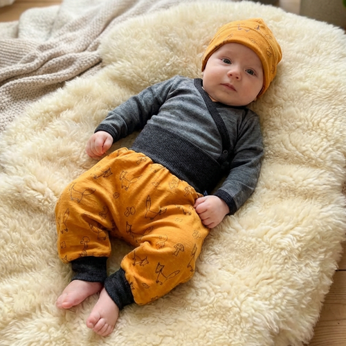 • Merino & Seide (≈17,5 µm)kratzfrei, temperaturausgleichend und geruchsarm: ideal als Base-Layer für Neugeborene & sensible Haut.